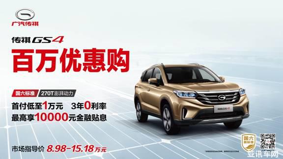 為了令更多用戶享受愉悅的出行生活,傳祺GS4在金秋推出了購車好禮:1萬元的超低購車門檻,用戶同時可享三年0利率最高10000元貼息,購車大禮貼心又暖心。您還在等什么呢?趕快加入傳祺大家庭吧!