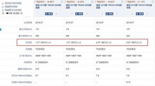 而在內(nèi)飾方面,與老款相比差別并不是很大,但是中高配車型以上加入了全液晶儀表盤,可以說與大眾品牌的車型基本一致,無論是UI設(shè)計還是功能豐富程度都十分出色,科技感十足。同樣,在動力方面也基本與老款車型保持一樣的動力總成,整車采用1.4T和2.0T兩種排量共三款發(fā)動機,其中1.4T發(fā)動機最大功率110kW,峰值扭矩250牛米,2.0T低功率版本最大功率137kW,峰值扭矩320牛米,2.0T高功率版本最大功率162kW,峰值扭矩350牛米,全系車型變速箱均匹配7擋雙離合變速箱,并都滿足國VI排放標(biāo)準(zhǔn)。