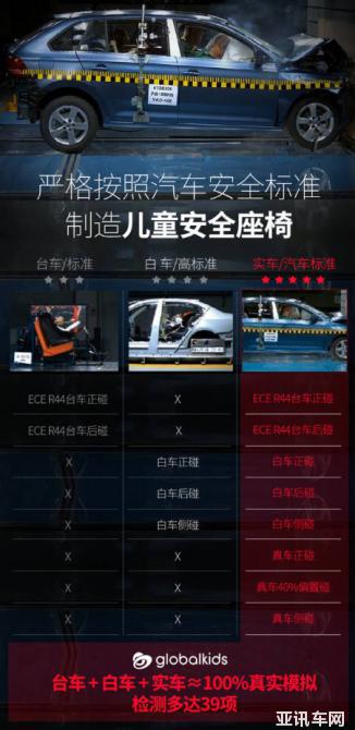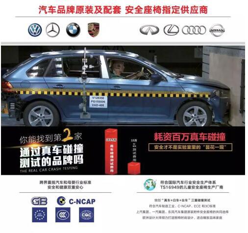 作為兒童安全座椅行業(yè)的模范生產(chǎn)企業(yè),環(huán)球娃娃從設(shè)計、選材到測試、制造,一直堅持不懈追求完美,技術(shù)標(biāo)準(zhǔn)比肩甚至超越了國際知名品牌。眾所周知,國標(biāo)3C認(rèn)證是我國兒童安全座椅的檢測標(biāo)準(zhǔn),ECE則是歐洲普遍認(rèn)可的兒童安全座椅檢測標(biāo)準(zhǔn),而環(huán)球娃娃則在此基礎(chǔ)上秉持更高的安全標(biāo)準(zhǔn),征服了行業(yè)的極限安全挑戰(zhàn)——“C-NCAP中國新車評價真車碰撞測試”,擊敗眾多國內(nèi)外兒童安全座椅品牌,連續(xù)3年奪冠,成為中國汽車技術(shù)研究中心C-NCAP真車碰撞測試指定使用的兒童安全座椅。