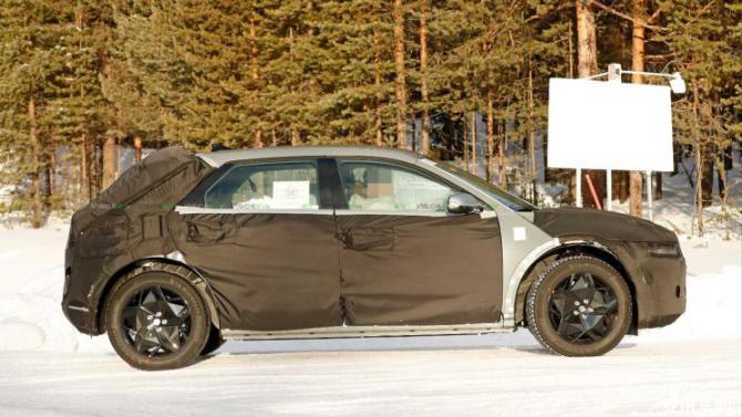 這臺在現(xiàn)代內(nèi)部代號為NE的測試在前大燈、C柱以及尾燈設計上能看出與現(xiàn)代在2019年法蘭克福車展上發(fā)布的45概念車非常接近,車身輪廓也能看出是采用了轎跑SUV的掀背式設計。