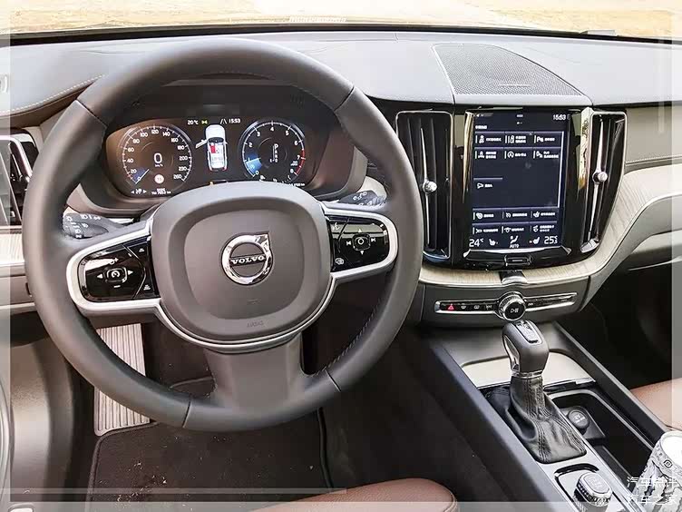 沃爾沃XC60整個(gè)方向盤采用細(xì)膩真皮所包裹,握感非常充實(shí),方向盤上黑色的高亮烤漆按鍵配合銀色輪廓低調(diào)中不失豪華感。