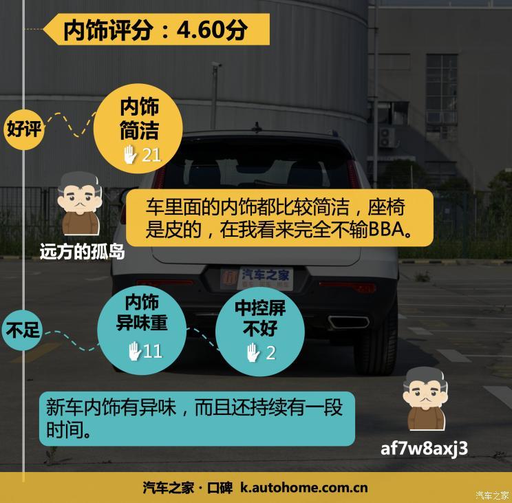 ● 沃爾沃XC40內(nèi)飾評分:4.60分內(nèi)飾簡潔好看,但車內(nèi)異味重