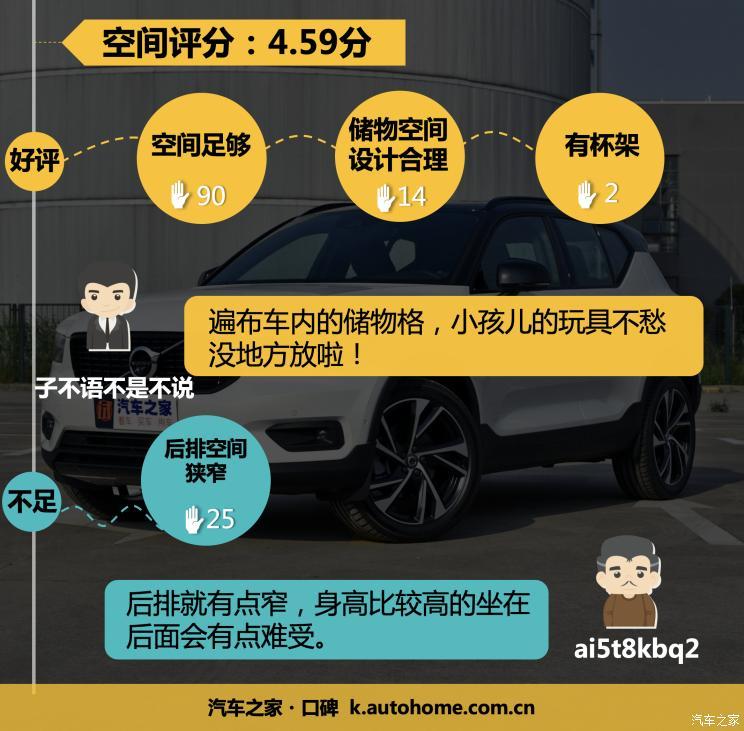 ● 沃爾沃XC40空間評分:4.59分空間足夠用