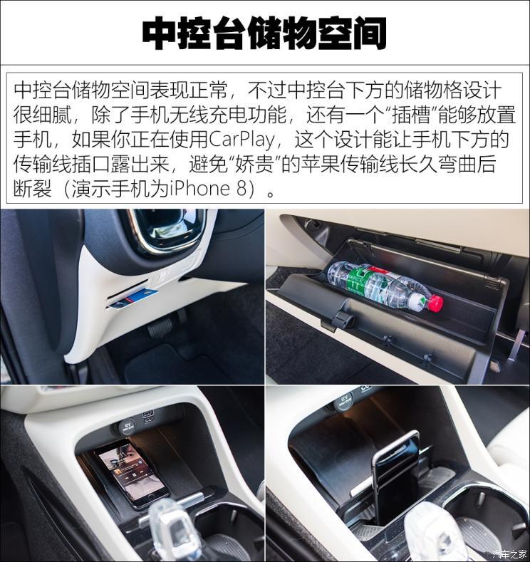 車內(nèi)儲物空間方面,沃爾沃XC40的表現(xiàn)相當(dāng)不錯,其儲物空間除了豐富之外,還具有許多貼心的小設(shè)計,像是中控臺下方的儲物空間,就設(shè)計出一個放置手機(jī),卻又不會讓iPhone傳輸線彎折的插槽。還有手套箱里面能夠翻折出來的小掛鉤、前排坐墊下方的小抽屜。這些都是XC40設(shè)計上的亮點(diǎn)。