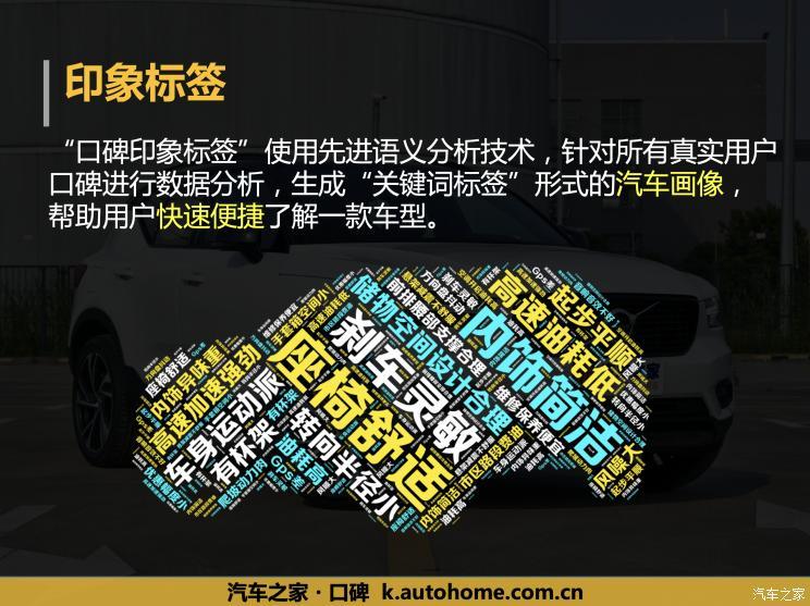 在汽車之家沃爾沃XC40車型頁面中,點(diǎn)擊“口碑”按鈕,即可查看沃爾沃XC40的印象關(guān)鍵詞?!白问孢m”、“剎車靈敏” 、“內(nèi)飾簡潔”、“高速油耗低”以及“儲物空間設(shè)計合理”等是消費(fèi)者對于沃爾沃XC40較為滿意的地方;而“GPS差”、“內(nèi)飾異味重”以及“風(fēng)噪大”等方面則受到了車主們的吐槽??梢娮鳛橐豢頢UV,外觀好看、好開易用、空間充裕是沃爾沃XC40車主的主要訴求,但它在市區(qū)油耗和舒適性等方面還有所欠缺。