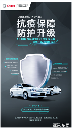 面對(duì)嚴(yán)峻的疫情形勢(shì),東風(fēng)風(fēng)神堅(jiān)持以人為本,安全第一,加快“抗疫健康車”方案實(shí)施,以最快速度完成落地,力爭(zhēng)在20天內(nèi)完成首批1500輛東風(fēng)風(fēng)神E70“抗疫健康車”的搭載并投入使用。
