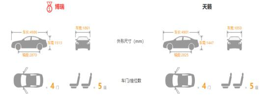 博瑞基于吉利KC平臺(tái)打造,其車身長(zhǎng)寬高分別為4,986mm、1,861mm、1,513mm,均為同級(jí)車中的翹楚。在對(duì)空間起決定性作用的軸距方面,博瑞也力拔頭籌,2,870mm的軸距為卓絕大空間奠定了基礎(chǔ)。天籟的長(zhǎng)寬高數(shù)據(jù)分別為4,901mm、1,850mm、1,447mm,軸距為2,825mm,在同級(jí)車型中也屬“上品”,但與博瑞的寬大車身、超長(zhǎng)軸距相比,略顯不足。