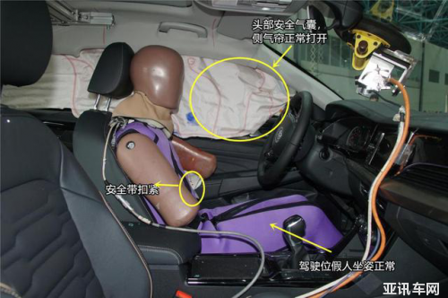 從車內安全配置的表現和假人的表現來看,前后排假人坐姿正常,安全帶緊扣,安全氣囊和安全氣簾正常打開。在實際用車中,正面碰撞時有發(fā)生。印象最深的一次是在2015年南京的一個十字路口,A車就從側面撞散了B車。造成B車內成員全部喪生。從側面碰撞的圖片來看,上汽大眾帕薩特的車身側面最起碼經受起50km/h速度差的考驗。