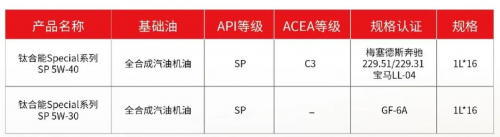 伴隨汽油機(jī)油最高標(biāo)準(zhǔn)API SP的到來,統(tǒng)一鈦合能全新上市special系列,幫助車主解決新時(shí)代乘用車的極限技術(shù)問題。0W-16、0W-20、0W-30、5W-20、5W-30、5W-40、10W-30、10W-40,全部獲得美國石油協(xié)會API認(rèn)證!