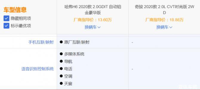 那么,我們此次對(duì)比全新哈弗H6 2.0GDIT自動(dòng)鉑金豪華版(以下簡(jiǎn)稱全新哈弗H6鉑金版)和日產(chǎn)奇駿 2.0L CVT時(shí)尚版2WD(以下簡(jiǎn)稱奇駿),看看誰(shuí)能贏得甜蜜頭籌。