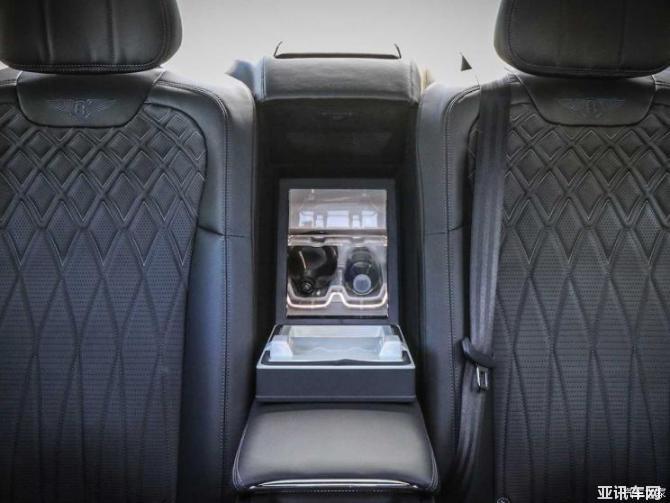首先,賓利為后排提供了車載冰箱選裝服務,冰箱安裝在后排中央扶手之后。該冰箱的溫度可調范圍為+6°C至-6°C,可以容納6瓶330ml易拉罐,四瓶500ml水瓶或兩個750ml大小的香檳瓶。此外,由于該冰箱散熱器采用了全新的設計,所以不會對后備廂空間產生影響。
