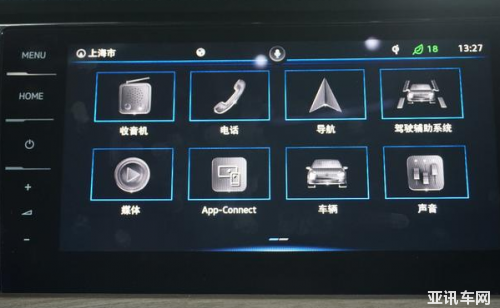 開機(jī)后屏幕顯示的是8個(gè)圖標(biāo),這些圖標(biāo)可以自由拖動(dòng)排序,與我們的智能手機(jī)非常相似,并且支持揮手翻頁,科技感很強(qiáng),也便于駕駛時(shí)操作。