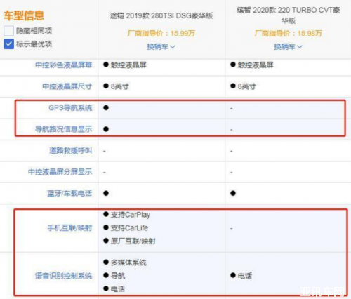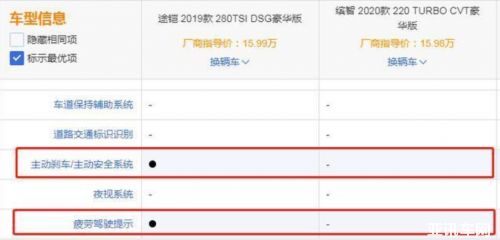 當然要看這兩款車型如何選擇,還是對比配置最為實在,我們選擇價位相近的兩個版本,分別為途鎧280TSI DSG豪華版與繽智220 TURBO CVT豪華版,兩款車型在價格上僅差距100元,不過配置方面倒是有著顯著的差別。比如在安全配置方面,途鎧不僅配備前排側氣囊,還有前后排頭部氣囊,以及主動剎車系統(tǒng)與疲勞駕駛提示,可以避免駕駛者處于疲勞駕駛的狀態(tài),主動剎車也能有效避免一些人為的駕駛疏忽,當然這些是繽智這一版本并不配備的。