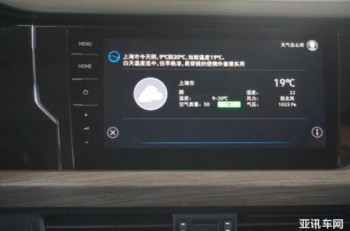 以往只能用固定的語音指令控制多媒體、導航、藍牙電話等,該系統(tǒng)已經(jīng)升級到可利用自然語句識別,比如語音搜索 "天氣怎么樣"時,屏幕上會出現(xiàn)當?shù)氐奶鞖馇闆r,包括濕度、空氣質(zhì)量、風力、氣壓等信息都能得到具體展示。