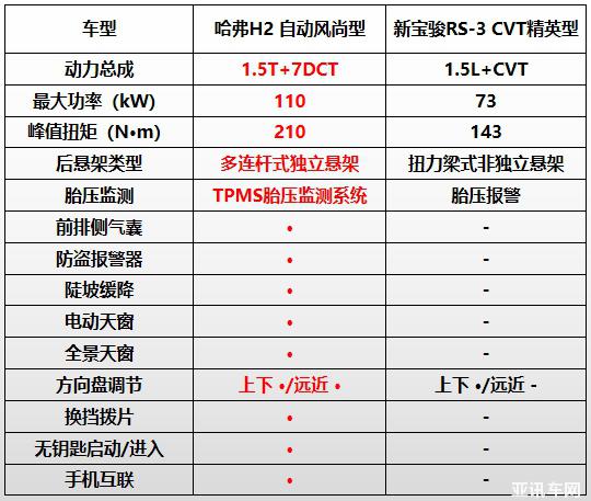 更主要的是,哈弗H2在整車配置上不僅遠(yuǎn)勝新寶駿RS-3,更實(shí)現(xiàn)了對(duì)同級(jí)競(jìng)品“碾壓式”的領(lǐng)先。首先在底盤方面,哈弗H2全系搭載前麥弗遜、后多連桿式雙獨(dú)立懸架組合,將整車吸引力拉滿,不僅增強(qiáng)了哈弗H2的舒適性與駕控感,更大大提高了整車通過性能,即使在道路崎嶇的非鋪裝路面,哈弗H2也能毫不費(fèi)力,如履平地。而新寶駿RS-3則采用扭力梁式非獨(dú)立后懸架,讓整車舒適性、駕控性大打折扣,遠(yuǎn)遜于哈弗H2。