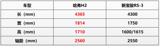 并且在整車尺寸上,哈弗H2長(zhǎng)寬高分別為4365/1814/1710mm,軸距達(dá)到2560mm,視覺效果更好,空間表現(xiàn)遠(yuǎn)超同級(jí)其他車型。而新寶駿RS-3長(zhǎng)寬高為4300/1750/1600(1615)mm,軸距為2550mm,無論是駕乘舒適性還是裝載能力,都與哈弗H2有著明顯差距。