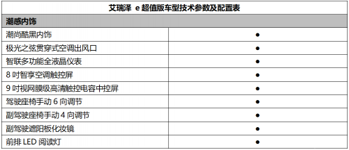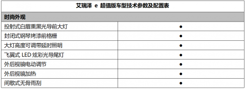 整體來說,艾瑞澤e超值版在做到十萬級價格超值的基礎上,還能保證擁有超大寬體空間、401km超長續(xù)航、多項舒適智能配置、五星安全碰撞標準設計等超值產品力優(yōu)勢,是用戶馭享“5+2”出行生活半徑的品質之選。另外,除為用戶提供超值購車價格和卓越產品品質的同時,購買艾瑞澤e超值版還可享受三電終身質保和終身免費基礎保養(yǎng)超值用車服務,從根本上解決用戶的后顧無憂。
