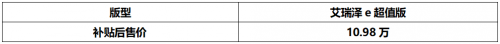 隨著經濟發(fā)展和人們物質生活水平的提升,對于消費者來說,汽車很多時候已經不單單是一個交通工具,更多演變?yōu)閷ι钇焚|的追求。同時,對于目前青睞理性消費的年輕群體來說,除了高品質,超值性價比也是他們無法抗拒的誘惑。而奇瑞新能源近期新推出的艾瑞澤e超值版,擁有寬體空間、多項舒適智能配置、長續(xù)航、五星安全碰撞標準設計等出眾品質,最重要的是價格十分超值,補貼后售價僅為10.98萬元,具有更高性價比優(yōu)勢,尤為值得推薦給廣大消費者購買。