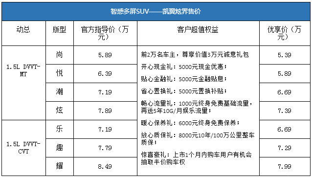 綜合來看,凱翼炫界是一款高品價(jià)比SUV的代表車型,無論是時(shí)尚的外觀還是眾多智能、安全配置都十分令人滿意。此次炫界上市有著非常多的鉅惠活動(dòng),讓炫界有了更高的品價(jià)比,年輕的朋友們千萬不要錯(cuò)過這次機(jī)會(huì),趕快行動(dòng)吧!