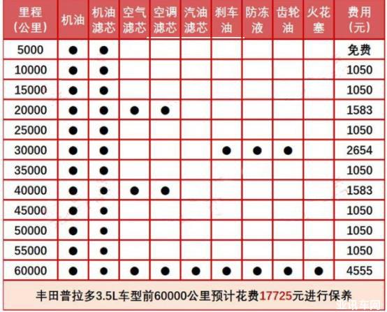 普拉多的保養(yǎng)周期為5000km一循環(huán),如果使用豐田純牌機(jī)油(4L裝398元,1L裝105元),小保養(yǎng)費(fèi)用為1050元,已經(jīng)是一筆不小的支出了。不僅如此,普拉多4S店的保養(yǎng)工時(shí)費(fèi),要比哈弗H9高出不少:哈弗H9小保養(yǎng)的工時(shí)費(fèi)僅為70元,而普拉多的工時(shí)費(fèi)是哈弗H9的四倍——高達(dá)280元。另外,由于普拉多的保養(yǎng)周期更短,所以前60000km的基礎(chǔ)保養(yǎng)費(fèi)用達(dá)到了17725元,已經(jīng)超過(guò)了某些同價(jià)位的豪華品牌。