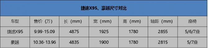 別忘了價格,兩款車的起步價都在10萬元左右,所以說,豪越開啟普惠時代的口號并不是說說而已,但要說先行者,可能捷途X95更早一步。