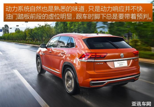 寶馬的X4明顯比X3開起來運(yùn)動、緊致,X6相比X5也是,在途昂X這兒就別想那么多了,它開著就跟途昂一樣。忽忽悠悠的大車身,輕巧的方向盤,較為通透的視野,這些都跟途昂一致。我所試駕的這輛途昂X 380TSI的油門響應(yīng)并不太好,它的前段虛位明顯,就算跑起來以后的跟車狀態(tài)也是如此,說簡單些就是油門“不跟腳”,很像開啟了節(jié)能模式,一旦遇到需要頻繁變速行駛的路段,理想的做法就是掛到S擋,這一點(diǎn)還是有些意外的。