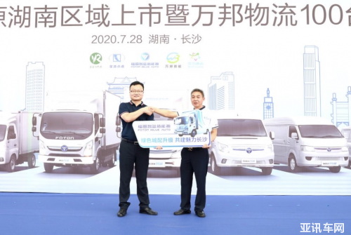 7月28日,福田智藍新能源湖南區(qū)域上市活動在長沙舉行,正式進軍湘鄂贛新能源市場?;顒蝇F(xiàn)場,向湖南萬邦物流成功交付100臺,并再獲當?shù)匦履茉粗髽I(yè)湖南益睿、星源點通500臺采購訂單,助力長沙市綠色貨運配送,為整個湖南省的綠色城配升級樹立新標桿。湖南省工信廳裝備處處長唐勇,福田汽車業(yè)務副總裁、福田智藍新能源總裁秦志東,湖南新能源推廣協(xié)會會長王思望,湖南益睿董事長柏林,湖南萬邦物流董事長任其均,以及長沙市新能源推廣協(xié)會的44家會員單位代表,長沙市綠色貨運城配示范企業(yè)代表等100余人出席活動。