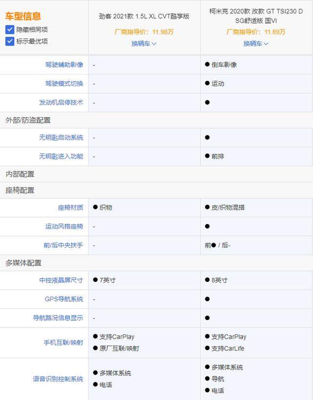 次低配直接貴了2萬(wàn),11.98萬(wàn)元將近12萬(wàn)了,相比柯米克GT TSI230 DSG舒適版11.89萬(wàn)元,缺少了倒車影像,駕駛模式切換,發(fā)動(dòng)機(jī)啟停,無(wú)鑰匙進(jìn)入、無(wú)鑰匙啟動(dòng)、運(yùn)動(dòng)風(fēng)格座椅、前排中央扶手、LED大燈、自動(dòng)空調(diào)等等配置,性價(jià)比太低了。