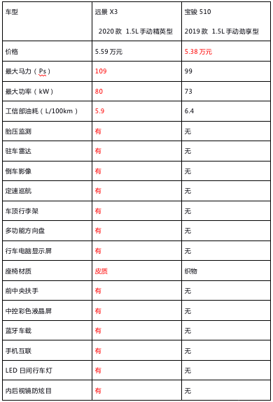 性價比PK:遠景X3更超值,寶駿510略樸實