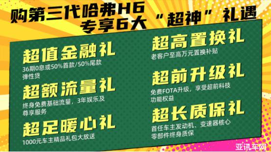 第三代哈弗H6上市的4款車型包括Plus版、Pro版、Max版、Supreme版,價格分別為11.59萬元、12.29萬元、12.89萬元、13.49萬元,標配了競品車型高配及選配才有的配置,打破合資車型的不合理溢價,加上超值金融禮、超高置換禮、超額流量禮、超前升級禮、超足暖心禮、超長質(zhì)保禮六大“超神”禮遇,牢牢抓住了用戶的心。