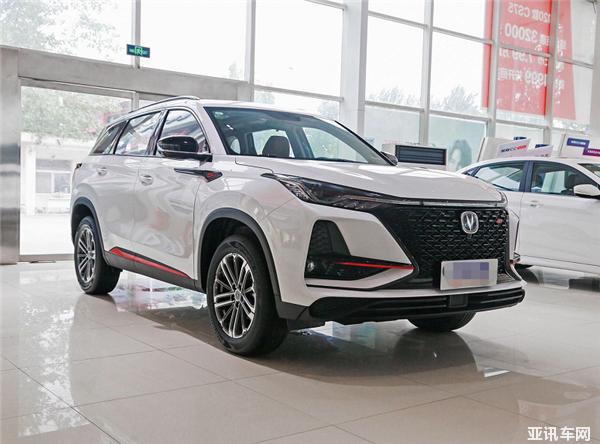 雖然長安CS75 PLUS也擁有著大面積的格柵,但搭配上穿過整個進氣格柵的前燈組合后,視覺效果非常浮夸,有些刻意模仿某雷車紡錘前臉設計。在車輛側邊的設計沿用了老款的風格,采用撞色的搭配,但沒有足夠硬朗的車身走線。