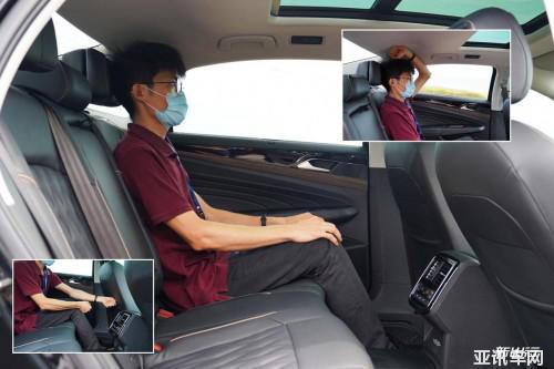 來(lái)到后排,腿部空間接近三拳。頭部空間一拳。