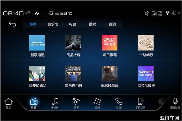此外,它還為駕乘者提供給了豐富的車載娛樂功能,在線電臺、在線音樂、在線資訊等一應(yīng)俱全。其中“網(wǎng)絡(luò)電臺聽伴FM”匯聚了時下熱門的網(wǎng)絡(luò)電臺節(jié)目,可收聽相聲、評書、脫口秀、故事、廣播等高質(zhì)量音頻節(jié)目。而“愛聽卓越”車載音樂系統(tǒng),能夠提供600萬+的高品質(zhì)音樂,喜馬拉雅聽頭條能夠播報國內(nèi)外的社會熱點,諸多的智能娛樂功能讓駕乘者堵車時不再感覺無聊。