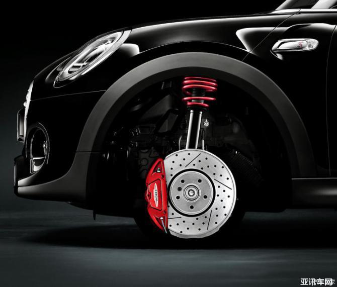 新車的造型設(shè)計(jì)與MINI JCW基本一致,而在外觀上其采用神秘的黑色金屬漆進(jìn)行涂裝,如前格柵、門(mén)把手、后視鏡外殼和腰圍飾等處采用黑色高亮鋼琴漆裝飾。除此之外,發(fā)動(dòng)機(jī)蓋附近及排氣尾管周圍也采用了碳纖維材質(zhì)。新車還采用了新的制動(dòng)系統(tǒng),17英寸的黑色輪圈及帶特定徽章的紅色卡鉗。