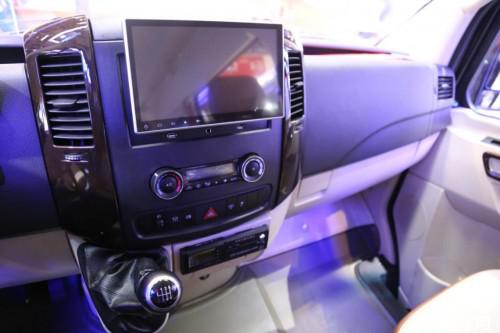 中控臺(tái)上還安裝了一塊尺寸非常大的液晶觸控顯示屏。中控臺(tái)的顯示屏應(yīng)該可以和車艙內(nèi)前頂部的顯示屏同步,同事們坐在一起討論著看電影或電視劇的感受應(yīng)該也非常不錯(cuò)。