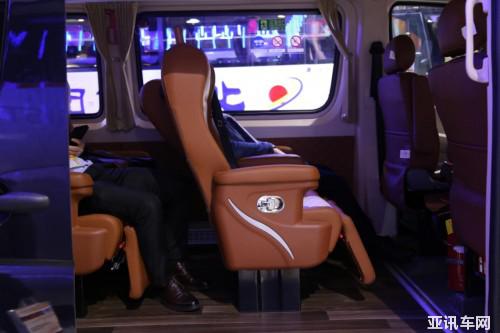 旅游出行肯定要舒舒服服的,睿星的座椅配置非常豪華,使用了全包圍的商務(wù)座椅,坐在上面非常軟。舉個(gè)例子,高鐵一等座的座位寬度是580mm,海格睿星的坐墊寬度就達(dá)到了500mm。另外座椅側(cè)面裝有扶手,前面帶有腳托,完全就是一等座的乘車體驗(yàn)。