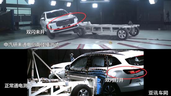 看過視頻的小伙伴會發(fā)現(xiàn),碰撞開始前,第三代哈弗H6的前大燈是沒有亮的;發(fā)生碰撞后,測試車的雙閃燈也沒有打開。也就是說,如果測試車真的在未通電的情況下進行碰撞測試,那當然不會觸發(fā)安全氣囊系統(tǒng)。
