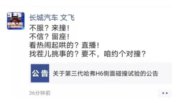 前兩天看到這樣一條朋友圈圖片,我還感嘆這是什么情況,仔細(xì)一看才知道原來是針對于前兩天第三代哈弗H6在中汽研測試中氣囊翻車給出的回應(yīng)。那個碰撞視頻我也看了,不過,我的態(tài)度十分中立,對于這件事有很多想要說的。