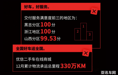 據(jù)了解,優(yōu)信12月啟動(dòng)“飛行交付“服務(wù),促進(jìn)二手車交付進(jìn)縣進(jìn)鄉(xiāng),實(shí)現(xiàn)”本地下單、本地上牌“,這一服務(wù)因耗時(shí)長(zhǎng),流程繁瑣,消耗的人力時(shí)間成本較高,一般的4S店很少承接這部分工作,或者需要高昂的服務(wù)費(fèi)用,但是優(yōu)信以100個(gè)中心城市為原點(diǎn),交付范圍覆蓋方圓500公里的縣、鄉(xiāng)、鎮(zhèn),真正實(shí)現(xiàn)一條龍服務(wù),讓小鎮(zhèn)青年享受到收快遞式的買車體驗(yàn)。其中率先體驗(yàn)飛行交付的黑吉分區(qū)因幫助客戶到鄉(xiāng)鎮(zhèn)上牌、落戶等服務(wù),被客戶評(píng)價(jià)為交付服務(wù)滿意度第一。