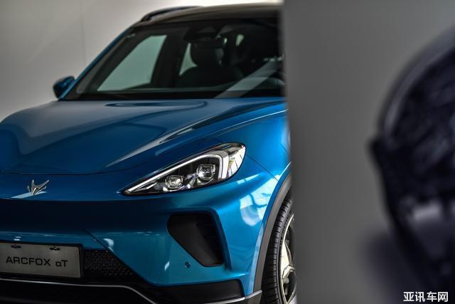 ARCFOX極狐αT的車頭有著保時(shí)捷Macan的影子,尤其當(dāng)我從正側(cè)面的角度去拍攝車頭時(shí),取景器里赫然就是一輛藍(lán)色的Macan。這份神似,主要?dú)w功于ARCFOX極狐αT的燈腔造型,一對(duì)萌萌的“青蛙眼”給整車定下了年輕、運(yùn)動(dòng)的主基調(diào)。