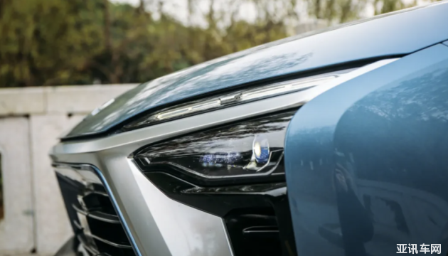 就比方說(shuō)大燈組,上方狹長(zhǎng)的部分實(shí)為日間行車(chē)燈兼流水轉(zhuǎn)向燈,開(kāi)啟時(shí)的效果相當(dāng)具有精致感;真正的照明燈組被隱藏在了下方的格柵內(nèi),采用了全LED光源,且具備自動(dòng)開(kāi)啟、自適應(yīng)遠(yuǎn)近光、轉(zhuǎn)向輔助燈等高階功能。
