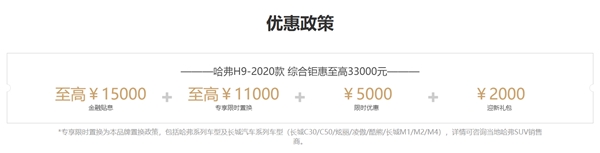 最后,投資還要看性價比是否足夠高。哈弗H9的官方指導價格為20.98-27.28萬元,現(xiàn)在購買還可享受至高33000元的優(yōu)惠政策。如此鉅惠實屬難遇,那些被基金“綠”到發(fā)慌的朋友們,長“紅”的哈弗H9難道不香嗎?