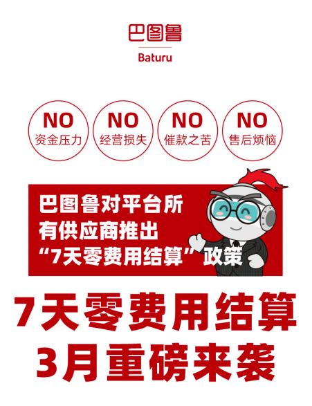 據(jù)了解,巴圖魯“7天零費(fèi)用結(jié)算”政策將在3月份全面推行。該政策面向平臺(tái)所有供應(yīng)商開放,這意味著只要是和巴圖魯合作的汽配商家,不需要支付額外費(fèi)用,在所有訂單成交后,巴圖魯會(huì)以“T+7”原則與其進(jìn)行貨款結(jié)算,貨款到達(dá)供應(yīng)商指定賬戶后,可自由提取。