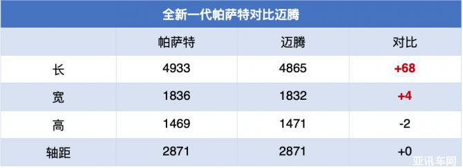 看完新老款對(duì)比之后,我們可以再對(duì)比一下邁騰,我們可以看到兩者的差距雖然不大,但是帕薩特在車長(zhǎng)和高上面有明顯優(yōu)勢(shì),接近五米的車長(zhǎng),接近C級(jí)車的長(zhǎng)度,保證了帕薩特更寬敞的空間的同時(shí),帶來(lái)的視覺(jué)感受也更強(qiáng)烈。