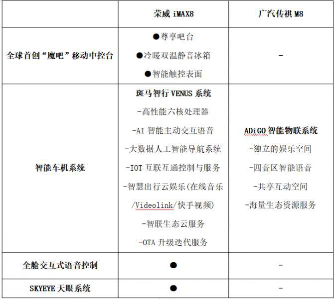 再看廣汽傳祺M8,它搭載了ADiGO智能物聯(lián)系統(tǒng),提供獨立的娛樂空間、四音區(qū)智能語音、共享互動空間、海量生態(tài)資源服務(wù)等。對比榮威iMAX8,廣汽傳祺M8的整車交互體驗感不夠強(qiáng),且智能系統(tǒng)無論是在UI設(shè)計、功能性還是流暢度等方面都沒有優(yōu)勢。