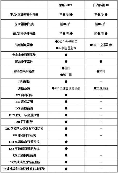 反觀廣汽傳祺M8,它搭載了360°全景影像、定速巡航系統(tǒng)、前倒車?yán)走_(dá)、前排安全帶未系提醒、主/副駕駛座安全氣囊、前排側(cè)氣囊、前/后排頭部氣囊等主被動安全配置。但在駕駛輔助系統(tǒng)方面,它并不配備并線輔助、LDW車道偏離預(yù)警系統(tǒng)、LKA車道保持輔助系統(tǒng)、AEB主動制動輔助系統(tǒng)、車側(cè)盲區(qū)影像、倒車車側(cè)預(yù)警系統(tǒng)、APA自動泊車、BSD盲點監(jiān)測、LCA變道輔助、RCTA后方十字交通報警、DOW開門報警、AEB主動剎車系統(tǒng)、第二排安全帶未系提醒等功能。這款車的智能駕駛輔助功能不齊全,無論是對注重客戶安全的商用用戶還是注重家人安全的家用用戶來說,都不夠有誠意。