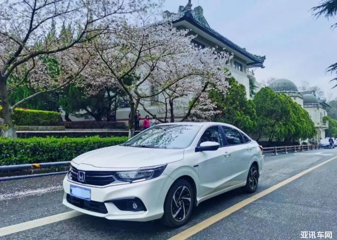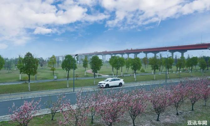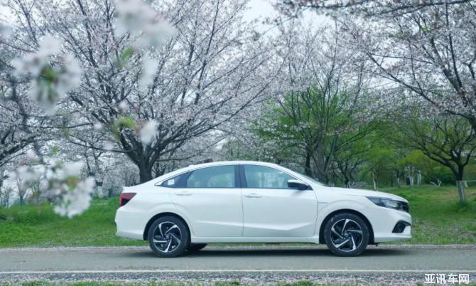 修長的車身、充滿力量感的側(cè)面線條、以及設(shè)計(jì)時尚的旋渦式輪轂,讓白色享域銳·混動與道路兩旁的櫻花相得益彰,別有一番風(fēng)味。