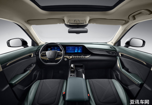 走進車內(nèi),濃濃的傳統(tǒng)竹林水墨綠清新?lián)涿娑鴣?,讓人心頭一亮。方向盤、中控按鍵以及擋把處還部分加入了淺金色的點綴,古典中蘊含著奢華。輔以3D氛圍燈,車內(nèi)氛圍烘托到了極致。雙12.3英寸全液晶儀表和中控大屏則凸顯了滿滿的科技感。