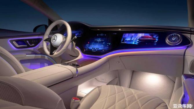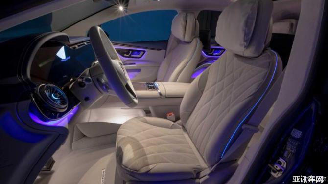 內(nèi)飾來看,整體造型依舊呈現(xiàn)出滿滿的未來感和科技感。新車將提供兩種不同風格的內(nèi)飾設(shè)計,其中配備MBUX Hyperscreen系統(tǒng)的采用貫穿式OLED大屏由非規(guī)則的曲面玻璃打造,并將三塊顯示屏內(nèi)嵌在其中,從而形成了無縫的一體式設(shè)計。兩側(cè)渦輪發(fā)動機樣式的空調(diào)出風口也被“融合”進這塊MBUX Hyperscreen大屏中,從而實現(xiàn)了對整個儀表臺區(qū)域的覆蓋。不僅如此,車內(nèi)曲面玻璃的應(yīng)用,既讓乘客的觸控操作更加舒適,還使整塊屏幕呈現(xiàn)出了懸浮感,猶如操控一艘“外星飛船”。