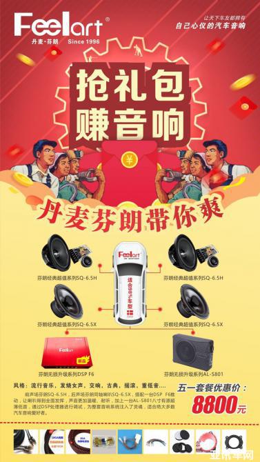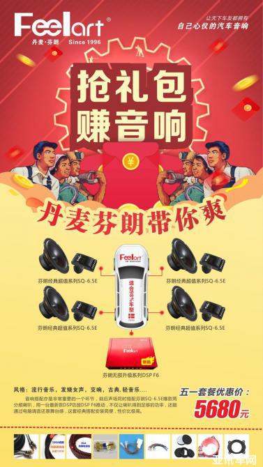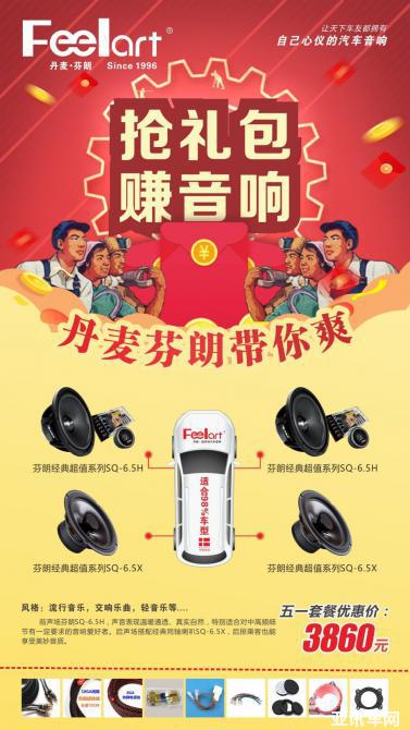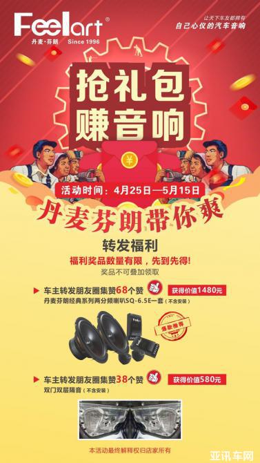 每一位汽車音響愛好者只要將此“搶禮包賺音響,丹麥芬朗帶你爽!”五一活動訊息,發(fā)到個人朋友圈內(nèi),然后獲得68個朋友點贊的,憑該條已經(jīng)獲得68個贊的朋友圈,到店,就可獲得一套價值1480元的丹麥芬朗經(jīng)典系列兩分頻喇叭SQ-6.5E(不含安裝費)。另外,如朋友圈點贊數(shù)量不足68個,但是滿38個的,可以獲得價值580元的雙門雙層隔音。